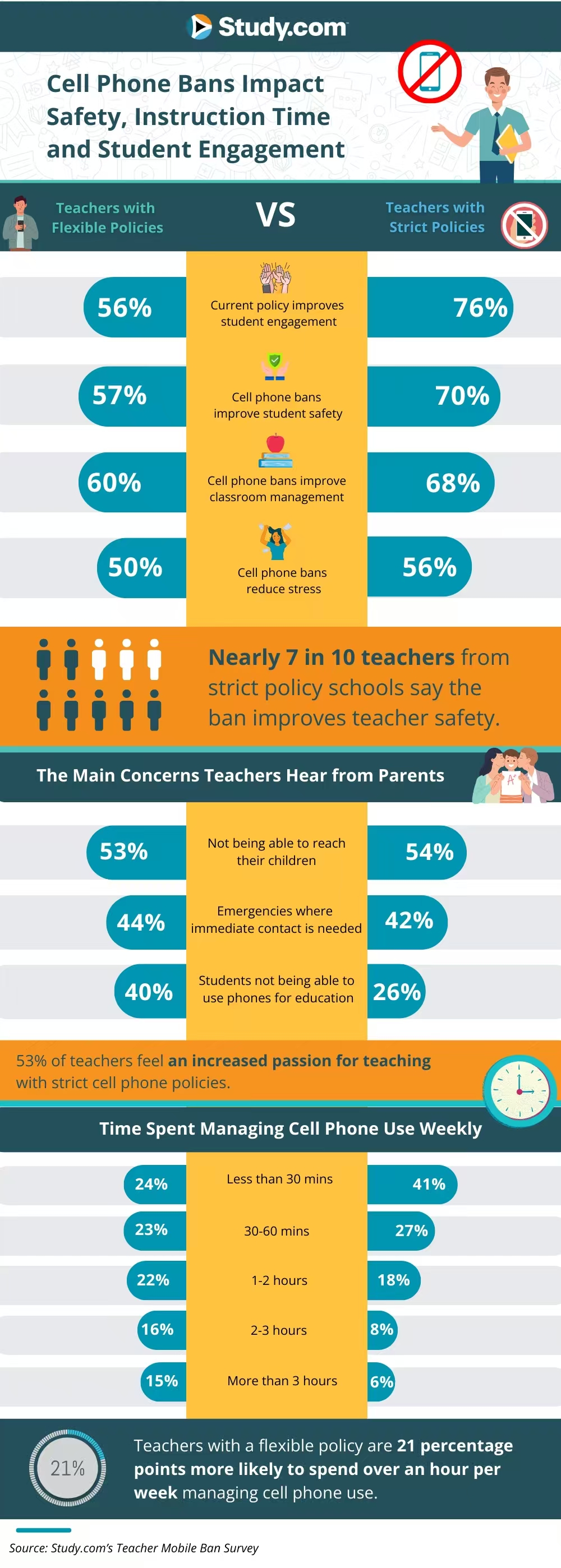 调查显示,76%执行严格手机禁令的教师认为政策改善了学生安全,70%认为提升了课堂管理效率