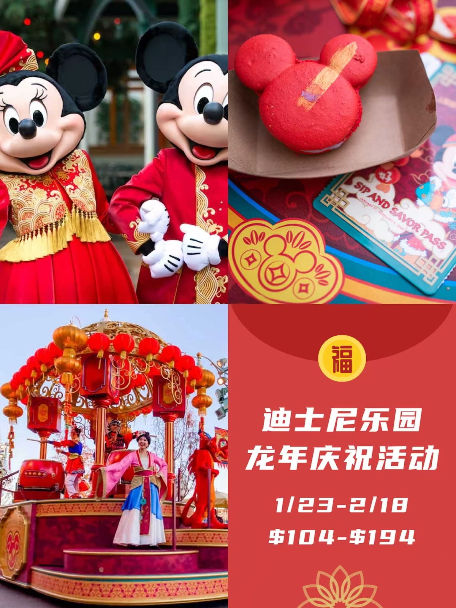 迪士尼的农历新年庆典已成为南加州家庭春节必选项。2026年活动突出中、韩、越三国文化融合: