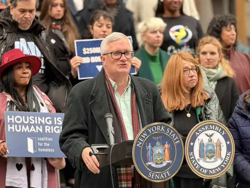 州参议员布莱恩·卡瓦纳(Brian Kavanagh)在集会上表示,HAVP的启动标志着多年来相关倡导工作取得了实质性成果,但同时也凸显出州政府仍需投入更多资源。“纽约各地正同时遭遇多重住房困境,包括逼迁率攀升、租金负担过重以及游民数量增加等问题,”他补充道。曼哈顿区长布拉德·霍伊曼-西格尔(Brad Hoylman-Sigal)则指出,住房可负担性已成为纽约市最紧迫的公共议题之一,他透露,目前纽约市每晚约有1.8万个家庭居住在庇护所内,其中不少是有未成年子女的家庭。