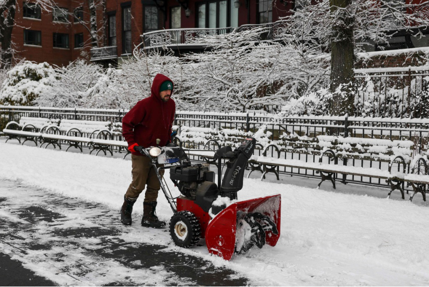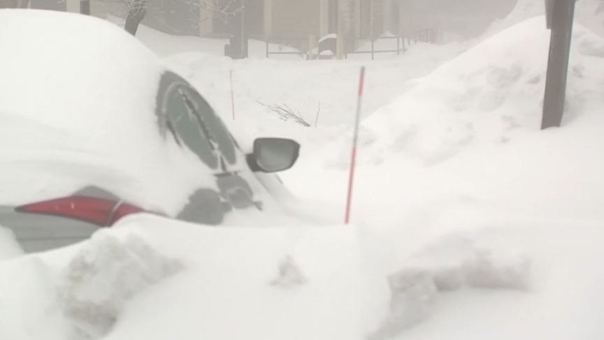 在纽约、新泽西、宾夕法尼亚等州,积雪厚度已超过10英寸(约25厘米),部分地区更是达到惊人的30-40厘米。街道上,汽车被厚厚的积雪掩埋,只能看到车顶的轮廓;行人艰难地在及膝深的雪地中跋涉,每一步都异常艰难。
